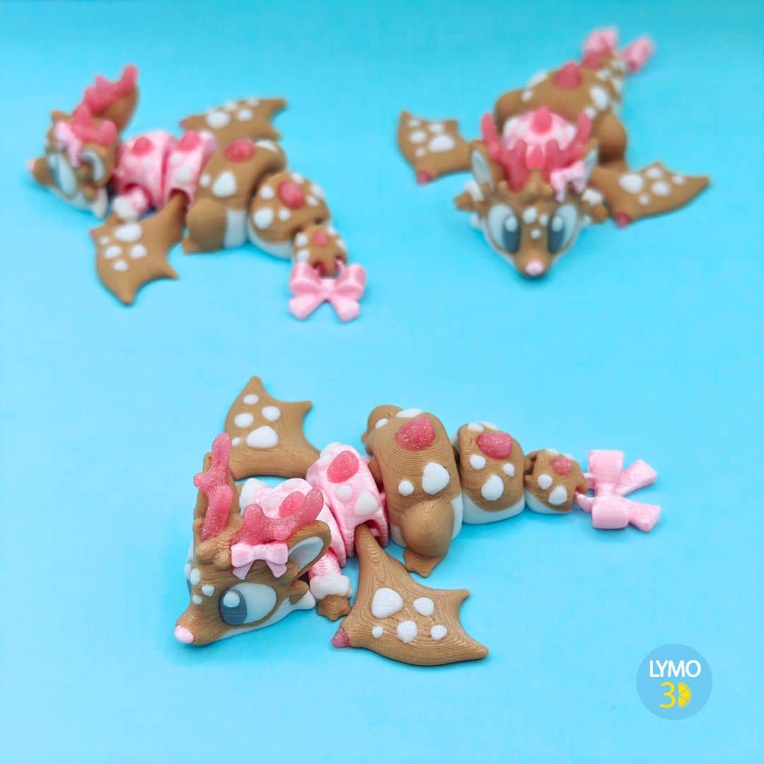 Cada Edición limitada Rosa Dragón Reno de navidad articulado está impreso en 3D con PLA compostable, un material sostenible que permite reproducir con precisión los detalles sin necesidad de pinturas ni acabados tóxicos. Gracias a esta técnica, cada figura presenta colores intensos, textura natural y un acabado limpio que respeta tanto la estética como el medio ambiente. Además, el PLA compostable asegura una durabilidad excepcional, haciendo que tu figura pueda acompañarte año tras año en tu decoración navideña.
