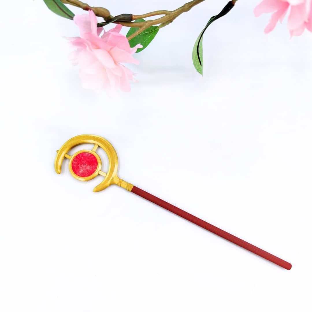 El nombre horquilla de la hechicera nace de la idea de llevar en el cabello un símbolo de poder y sabiduría, muy ligado al imaginario de los magos y hechiceras de la literatura y la animación japonesa. Cada detalle del diseño está pensado para transmitir ese aire encantado, con una silueta que recuerda a los báculos que acompañan a las magas en sus viajes.
