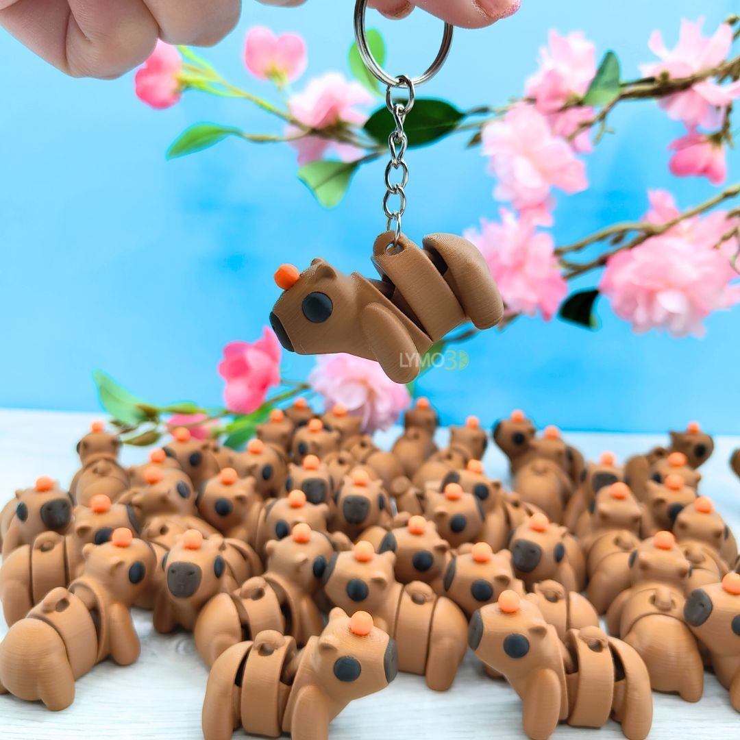 Descubre la ternura y originalidad del llavero articulado de Capibara, un accesorio único que combina diseño funcional y detalles encantadores. Perfecto para los amantes de los animales, este llavero es un compañero ideal para tus llaves, mochila o bolso.Fabricado mediante impresión 3D, está hecho con materiales PLA sostenibles, reflejando nuestro compromiso con el medio ambiente. Su diseño articulado permite que la capibara mueva el cuerpo, añadiendo un toque interactivo y divertido que lo hace destacar entre los accesorios convencionales.