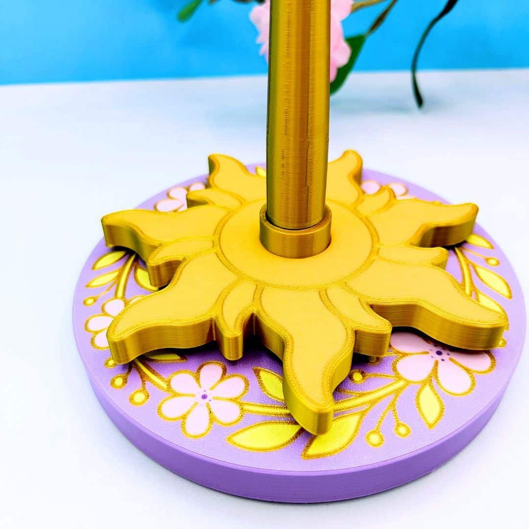 Inspirado en el icónico sol dorado del reino de Corona en la película Enredados, este portaovillos no solo cumple su función con eficacia, sino que además aporta un aire mágico y decorativo a tu espacio. Su base circular, decorada con un delicado relieve floral en tonos lavanda, sostiene una figura central del sol que brilla con protagonismo. Todo el conjunto evoca la estética de los cuentos de hadas modernos, con un guiño sutil al universo Disney.