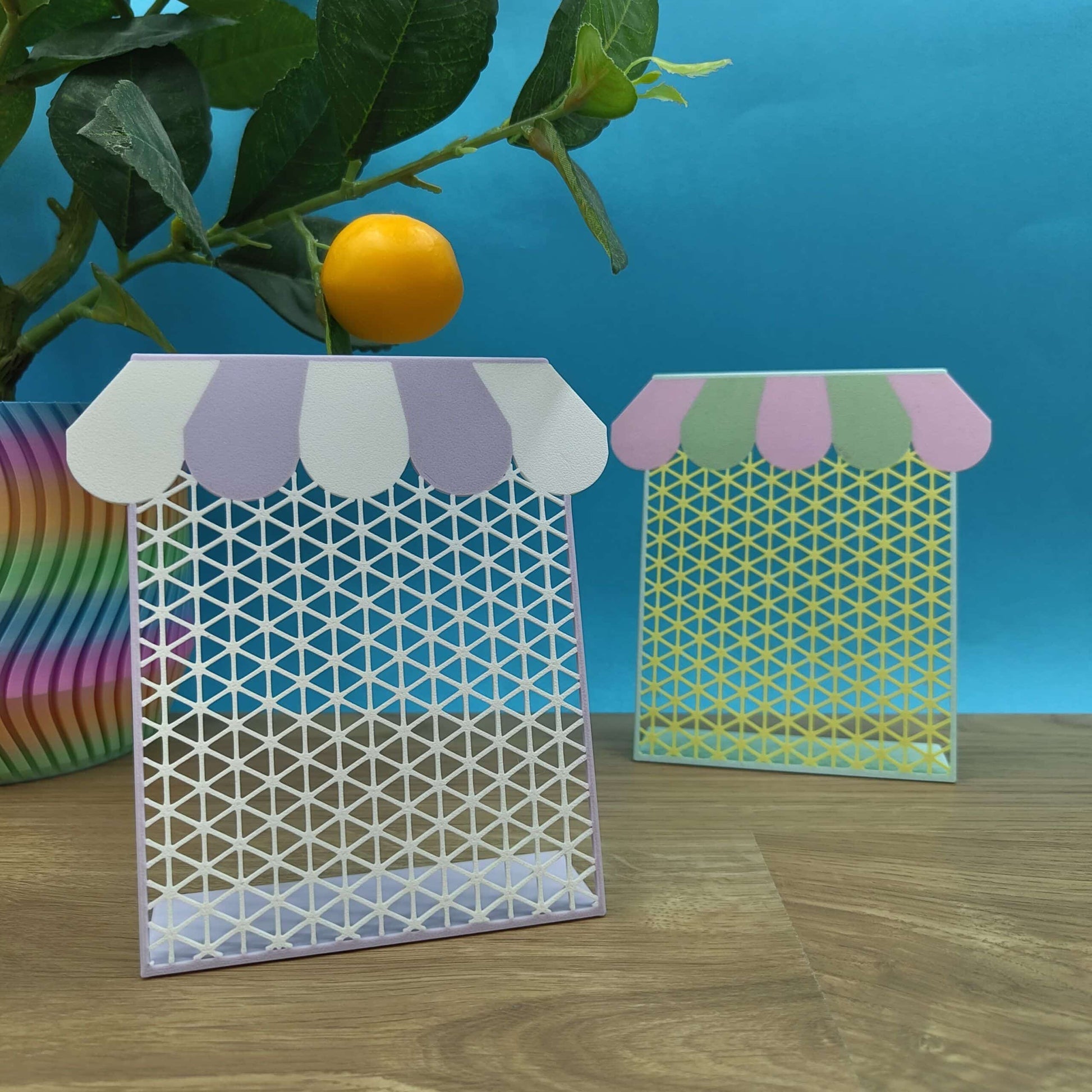 El soporte presenta una estructura frontal con niveles perforados para colgar tus accesorios, acompañado de un toldo superior que puedes personalizar en tus colores favoritos. Disponible en varias combinaciones, este soporte no solo es útil, sino también una pieza decorativa ideal para ferias, estanterías o tocadores.